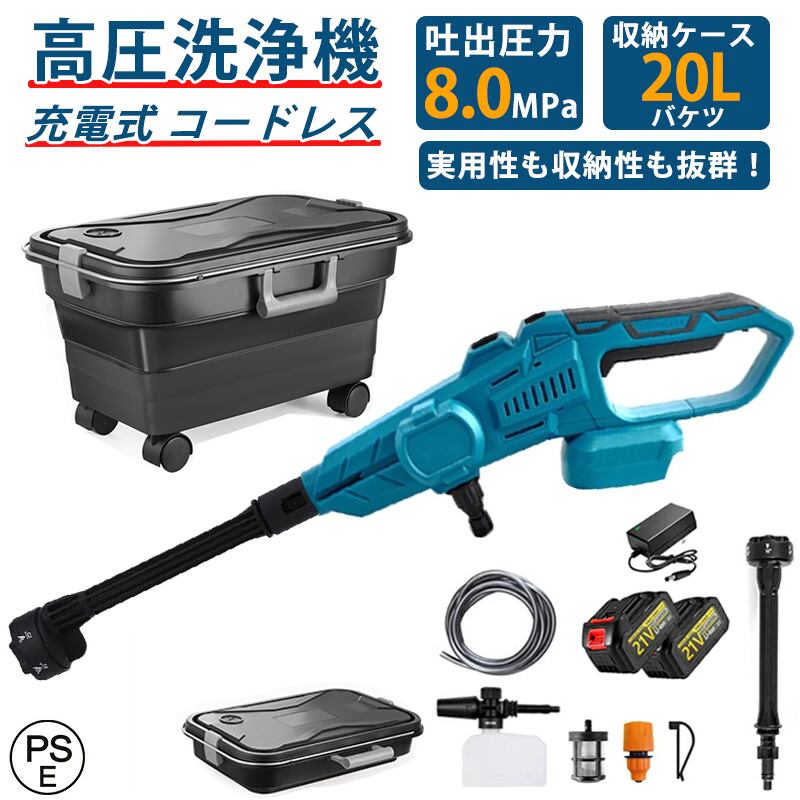 【折り畳みバケツ付き】高圧洗浄機 コードレス 充電式【3段階水圧調整】6段階マルチスプレー 8MPa吐出圧力 強力噴射 高圧クリーナー ハンディ 水圧調整可能 バッテリー残量表示 高圧洗浄ガン 自吸式 家庭用 ベランダ 収納ケース付