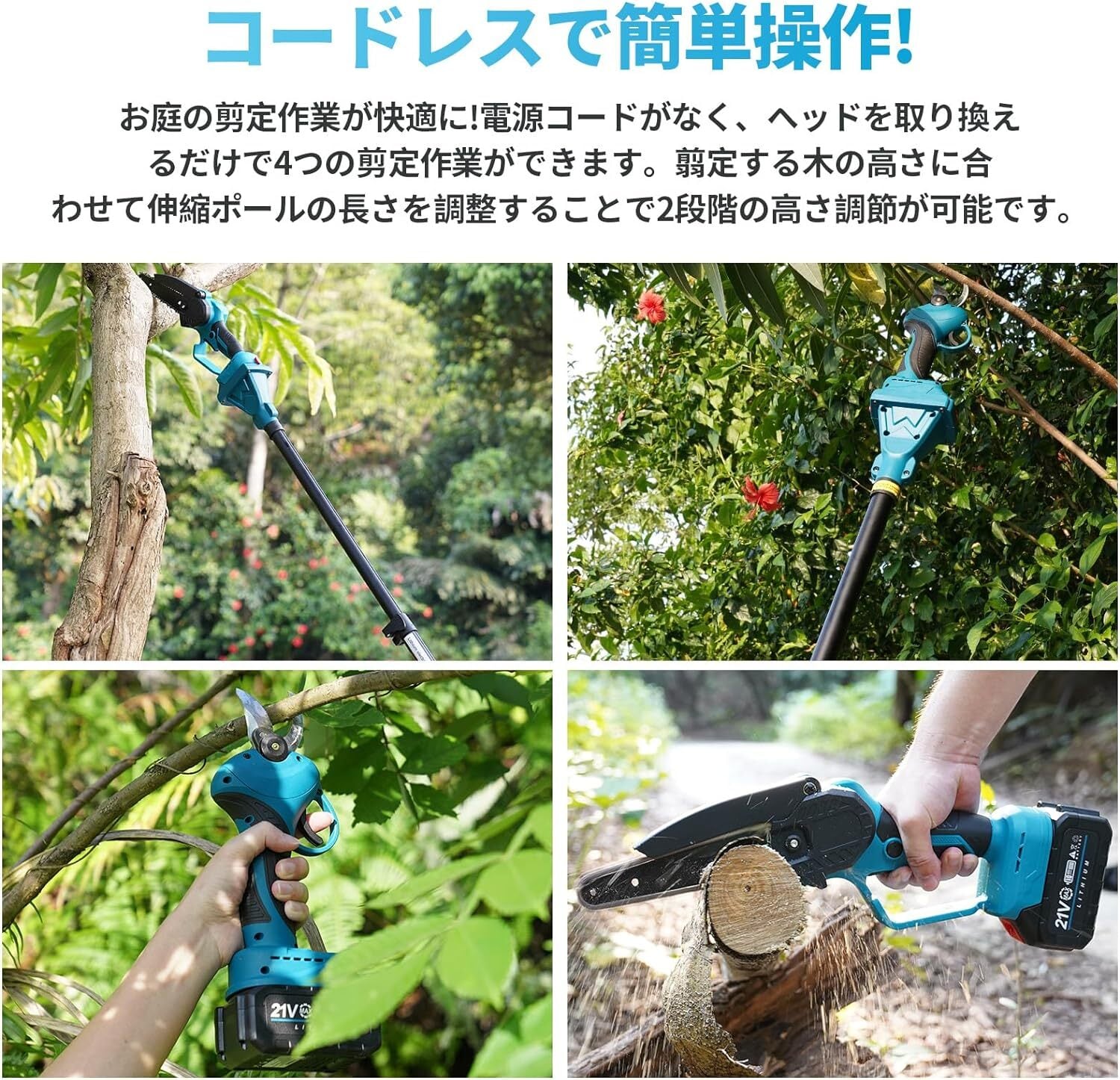 【3 in 1高枝切ミニ電動チェーンソー 、充電式剪定ばさみ組み合わせ】
