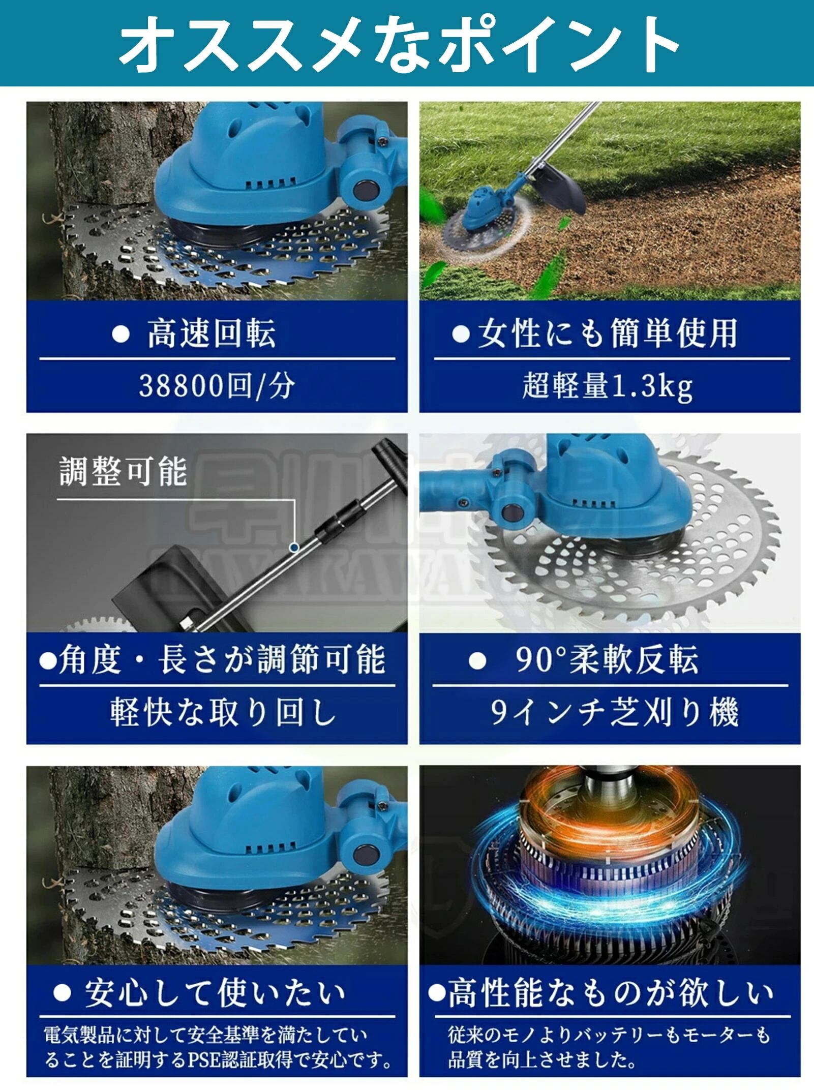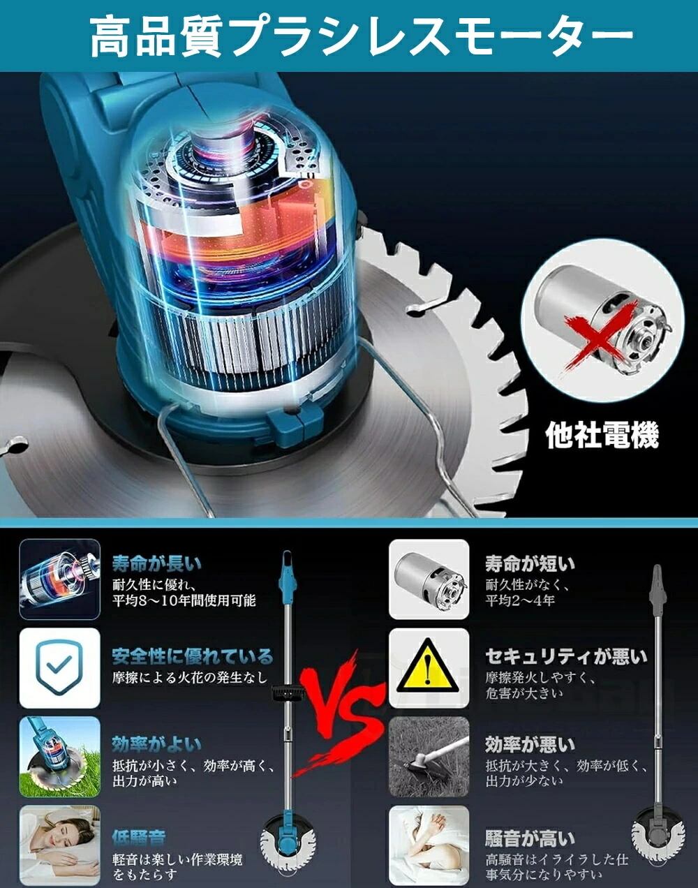 【楽天1位】58冠達成 2025年進化版 草刈り機 充電式 電動草刈機 コードレス ブラシレスモータ搭載 女性 21v コードレス 多機能 補助輪 刈込幅255mm ンランレスモーター 6 / 9インチ 刈払機 電動刈払機 伸縮式 3種類替刃 枝切り 軽量 芝刈り機 刈払機安全1年保証 日本語説明書