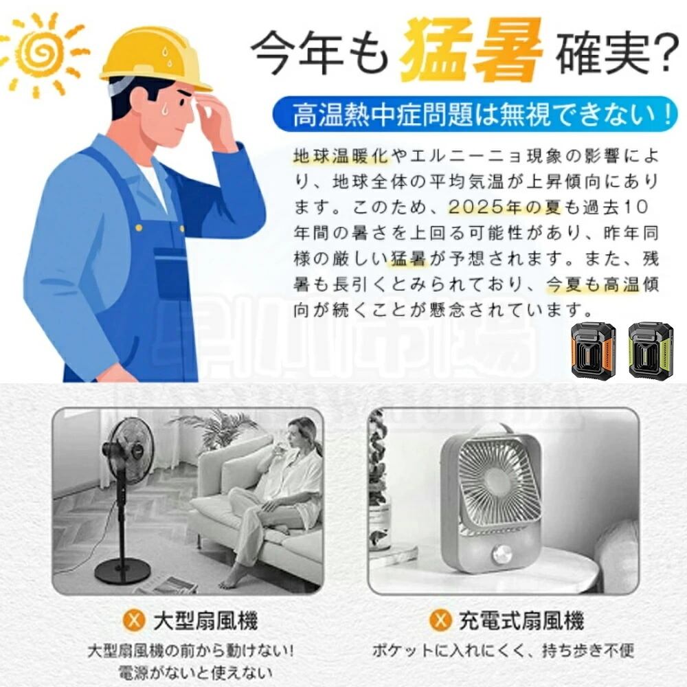ジェット級の風量で熱中症をブロック! 最大風速3.5m/sの強風モードからソフトな微風まで5段階調節可能。屋外作業やスポーツ時も快適な風を提供し、急な暑さにも対応します。