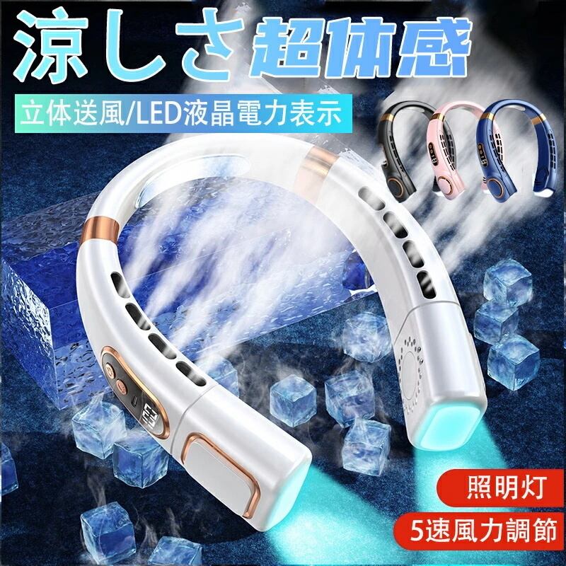 【ギフト特典限定大放送!】首掛け扇風機 ネックファン 扇風機 ネッククーラー 首かけ 羽なし瞬間冷却 強風 USB扇風機 5段階風量 LED残量表示 大容量5000mAh 360°冷却プレート 軽量 強力 USB充電 静音 小型 おしゃれ 熱中症対策