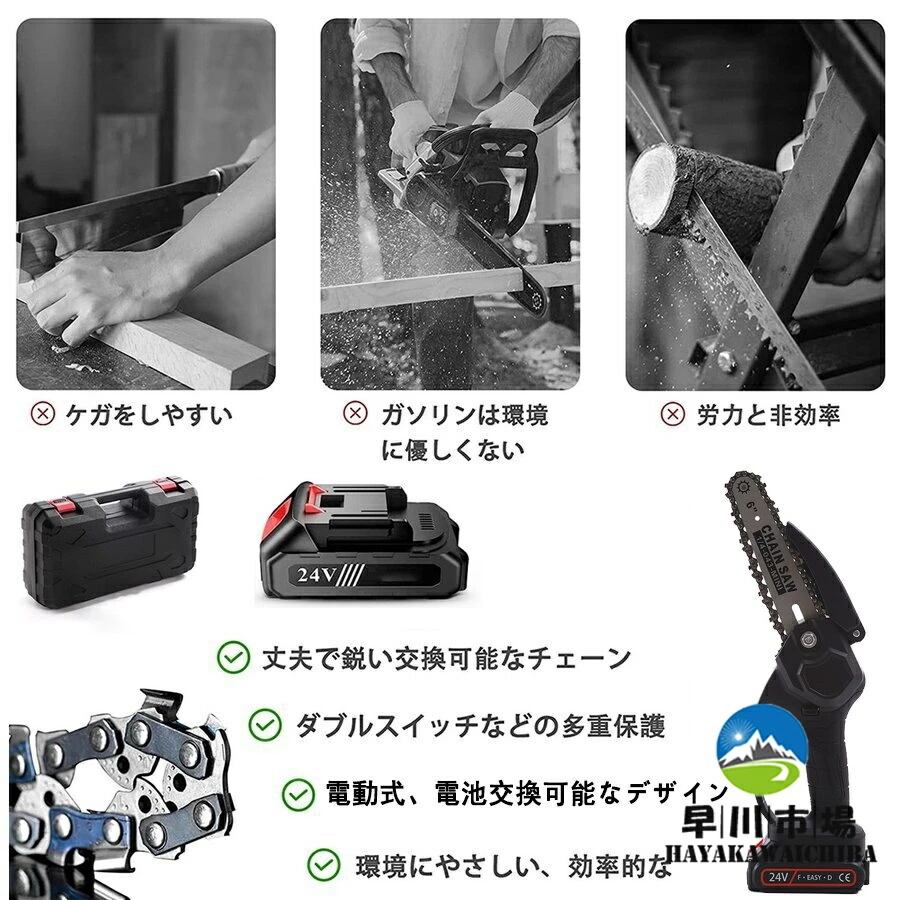 【バッテリー+ 収納ケース付き】チェーンソー 充電式 電動チェーンソー 6インチ 小型 コードレス 小型チェンソー動ノコ 電動のこぎり 電動ノコギリ 高枝切りチェーンソー 家庭用 強力 片手 軽量 木工切断 枝切り 父の日 敬老の日 プレゼント