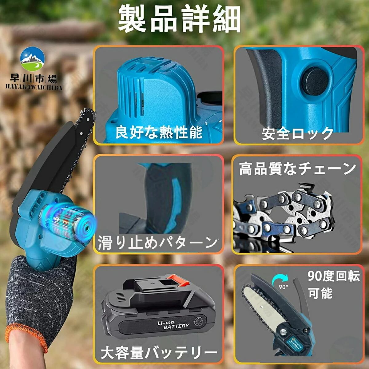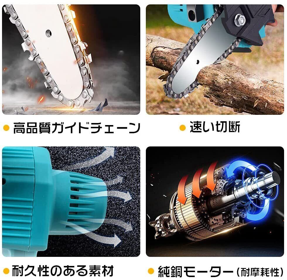【進化版チェーンソー】充電式チェーンソー 電動チェーンソー 家庭用 コードレス 4/ 6寸小型 ミニチェーンソー 小型 電動ノコギリ 電動のこぎり ハンディ チェーンソー 片手 軽量 強力 木工切断 枝切り 園芸設備 枝切り 庭木 【本体のみ】