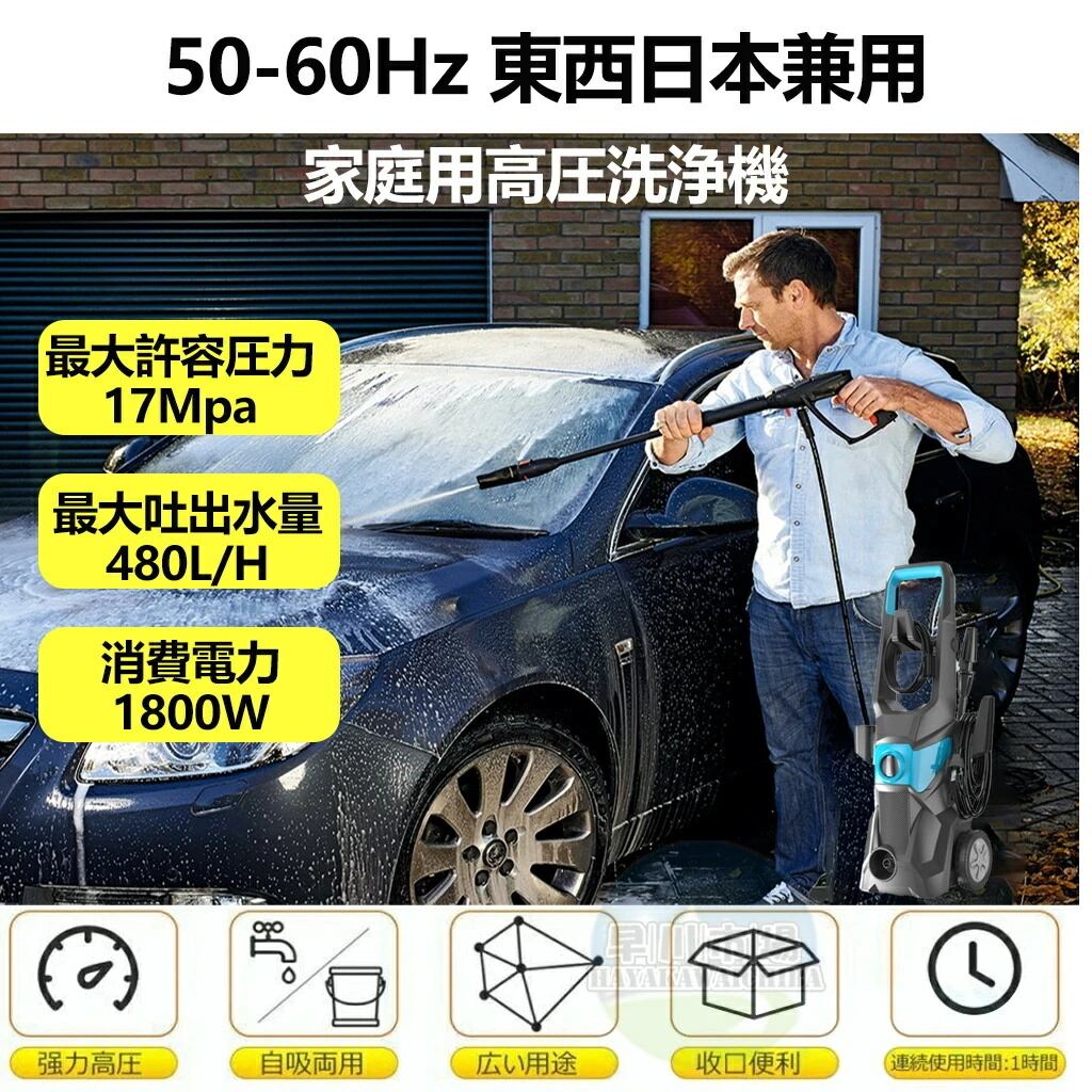 【2025新登場強化版】高圧洗浄機 業務用 1800W 17MPa 水道直結 自吸両用 高圧ホース20m 電源コード1.5m 二重絶縁 IPX5防水 家庭用 洗車 清掃 強力噴射 家庭用 静音 2点セット コンパクト 50Hz/60Hz ウォッシュブラシセット 洗車機 洗車用品 ベランダ 外壁 コケ PSE認証済み