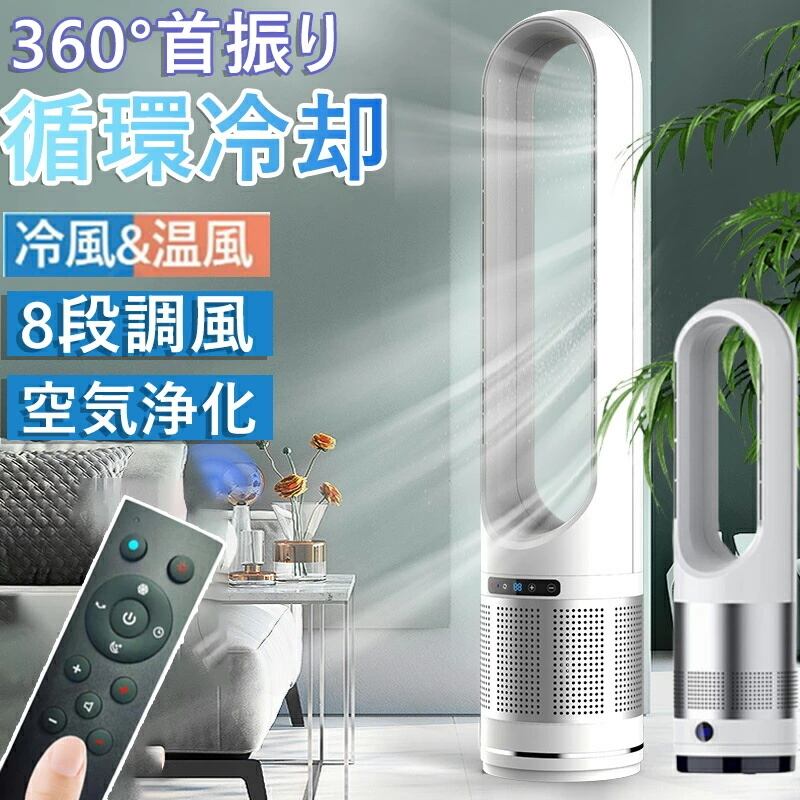 扇風機 dcモーター 羽なし 首振り タワー型 一台3役 風量調整 温風冷風 モード切替 タイマー 省エネ リモコン付き コンパクト リビング 業務 家庭用 PSE認証