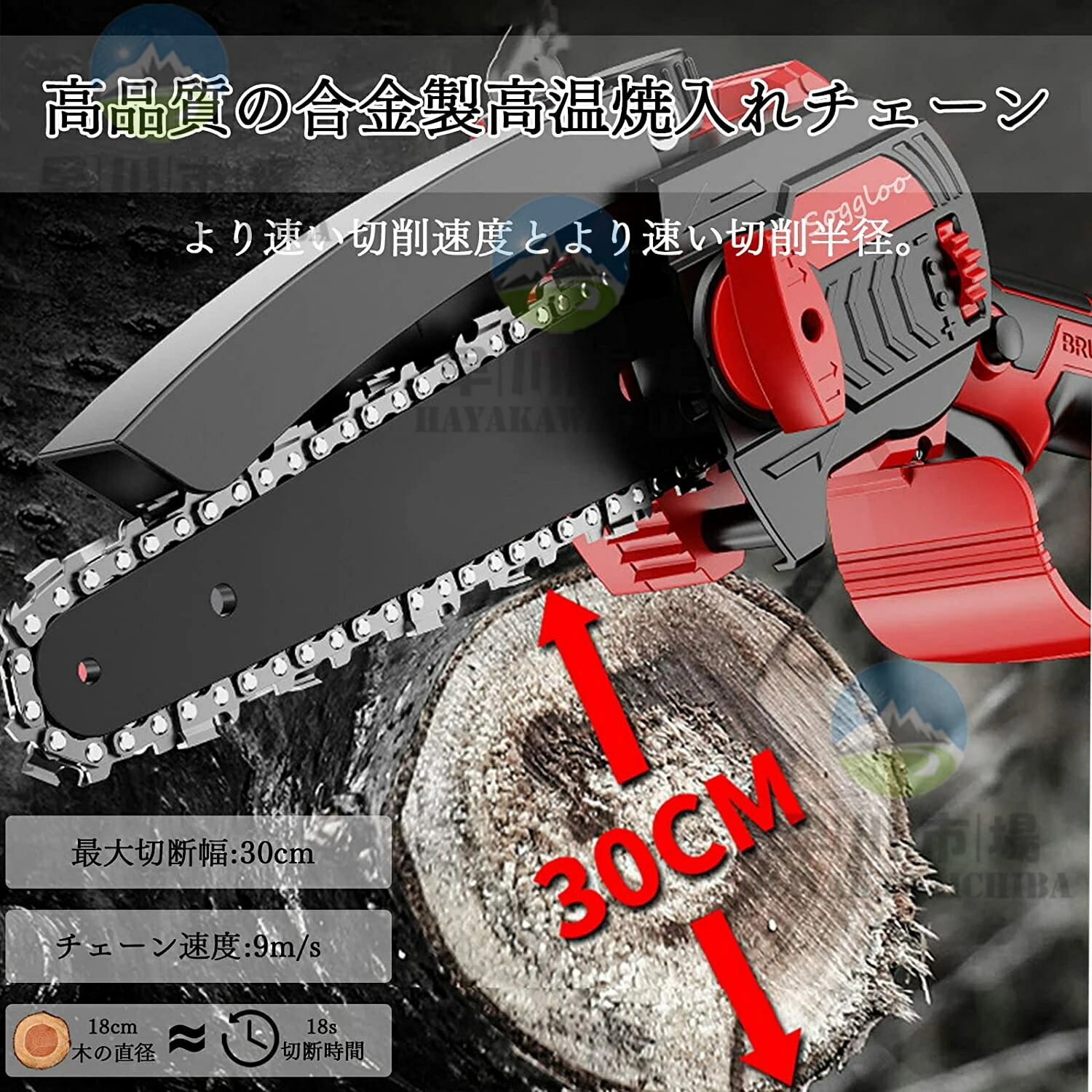 【ブラシレスモーター搭載&耐久性に優れ】 弊社の小型チェーンソーモーターは最新のブラシレスモーター採用、作動時に火花が発生せず、モーターが摩耗しません、寿命、効率が大幅に高まります。内蔵モーターは、超強動力を提供するとともに、過電流保護、過熱保護、充電保護などのインテリジェントな保護機能を提供して、高効率と安全的な作業のを提供できます。チェーンソーの重量はわずか1.3kgで、 片手で使えます、長く使うと疲れにくいです、女性やお年寄りによく似合います。