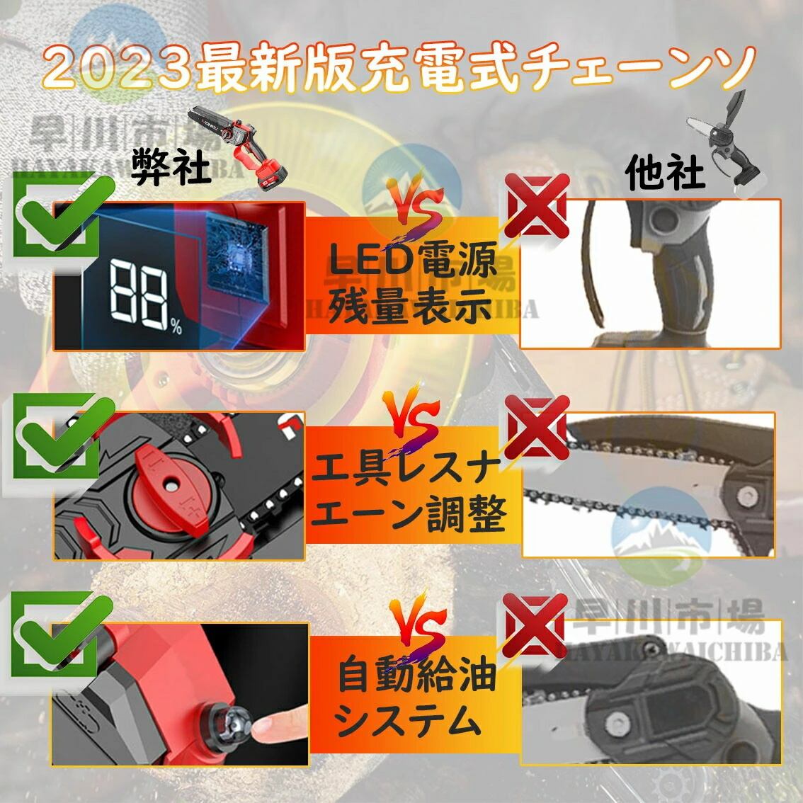 【工具レスチェーン調整】チェーンソー 充電式 電動 チェーンソー 6インチ ブラシレスモーター 自動給油 バッテリー残量表示 電動のこぎり 電動ノコギリ ハンディ チェーンソー 木工切断 工具不要 角度調節可能 軽量 強力 家庭用