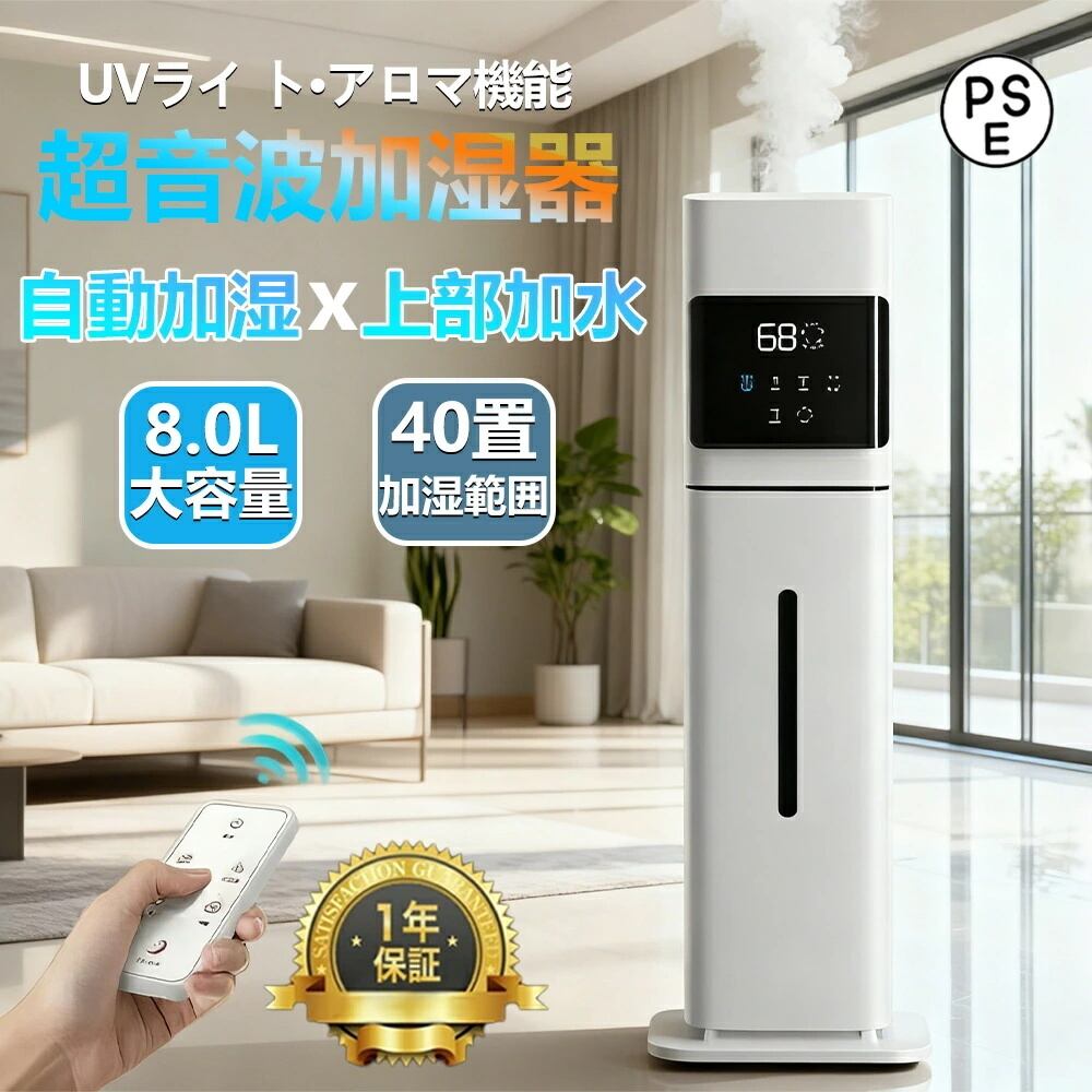 【2025最新型】加湿器 大容量 UV除菌&湿度設定 8L 空気清浄機 床置き・卓上 超音波 加湿器 次亜塩素酸水対応 おしゃれ 加湿 アロマ タワー加湿器 40畳 3段階ミスト調節 湿度センサー オフィス 部屋 お手入れ簡単 タイマー 静音 リモコン付 空焚き防止