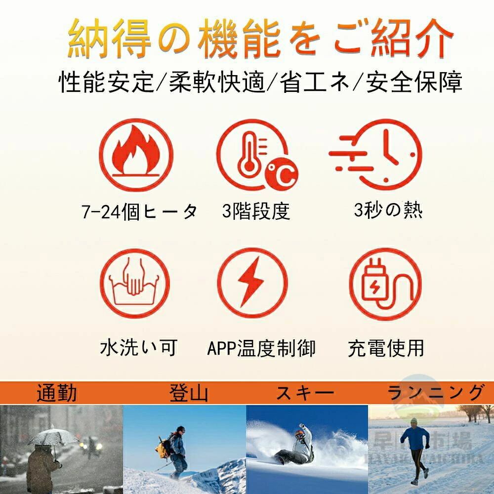 【Bluetooth温度制御】この電熱ウエアはスマホのBluetoothを開いて、APPを通じて温度をコントロールできます。スマホでON/OFF、温度調整と定時発熱設置を行う、服をめくる操作がなくなり、より人間的になります。