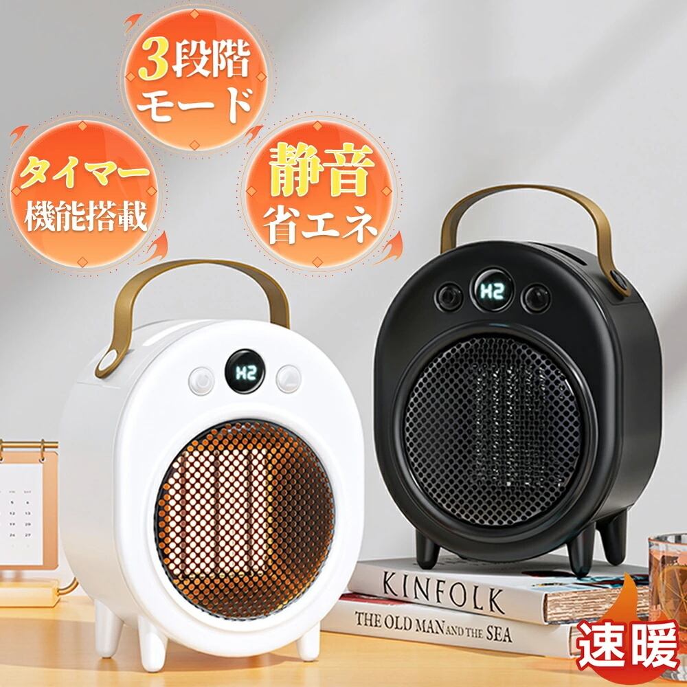 ヒーター 小型 セラミックヒーター 3段階切り替え タイマー機能搭載 電気ストーブ 省エネ 過熱保護 静音 足元 速暖 コンパクト 暖房器具 転倒オフ PSE認証