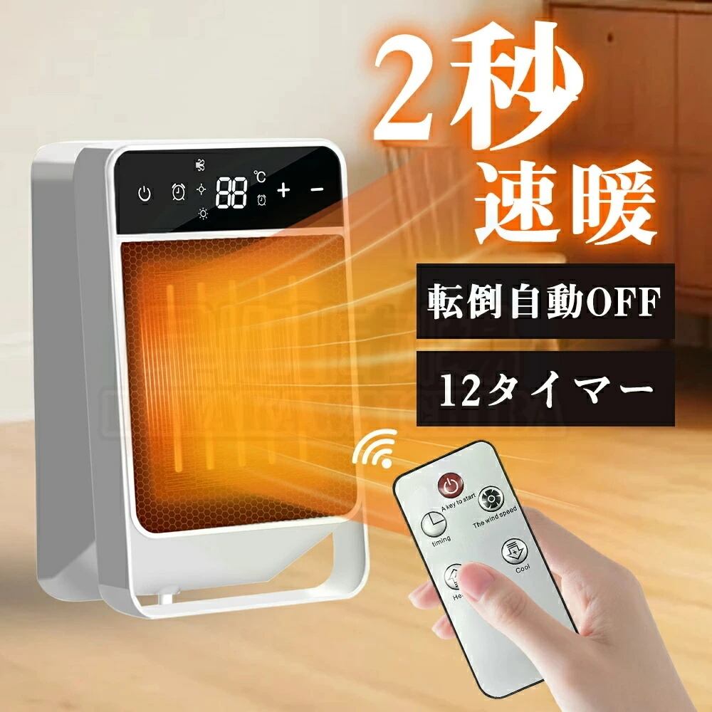 セラミックヒーター 小型 ファンヒーター 2速暖 小型 静音 省エネ おしゃれ 足元ヒーター 4段階切替 転倒自動オフ リモコン付き 卓上ヒーター タイマー付き LEDライト付き 電気ファンヒーター 過熱保護 安全装置 脱衣所 暖房器具
