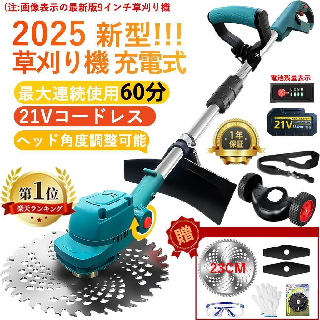 【楽天1位受賞!】草刈り機 充電式 電動草刈機 コードレス草刈り機 刈払機 充電式グラストリマー 除草 軽量 庭 園芸 雑草 刈払機 充電 軽量 安全 無線 替刃3種類 角度調整 バッテリー 送料無料 PSE認証 日本語の説明書 敬老の日 プレゼント