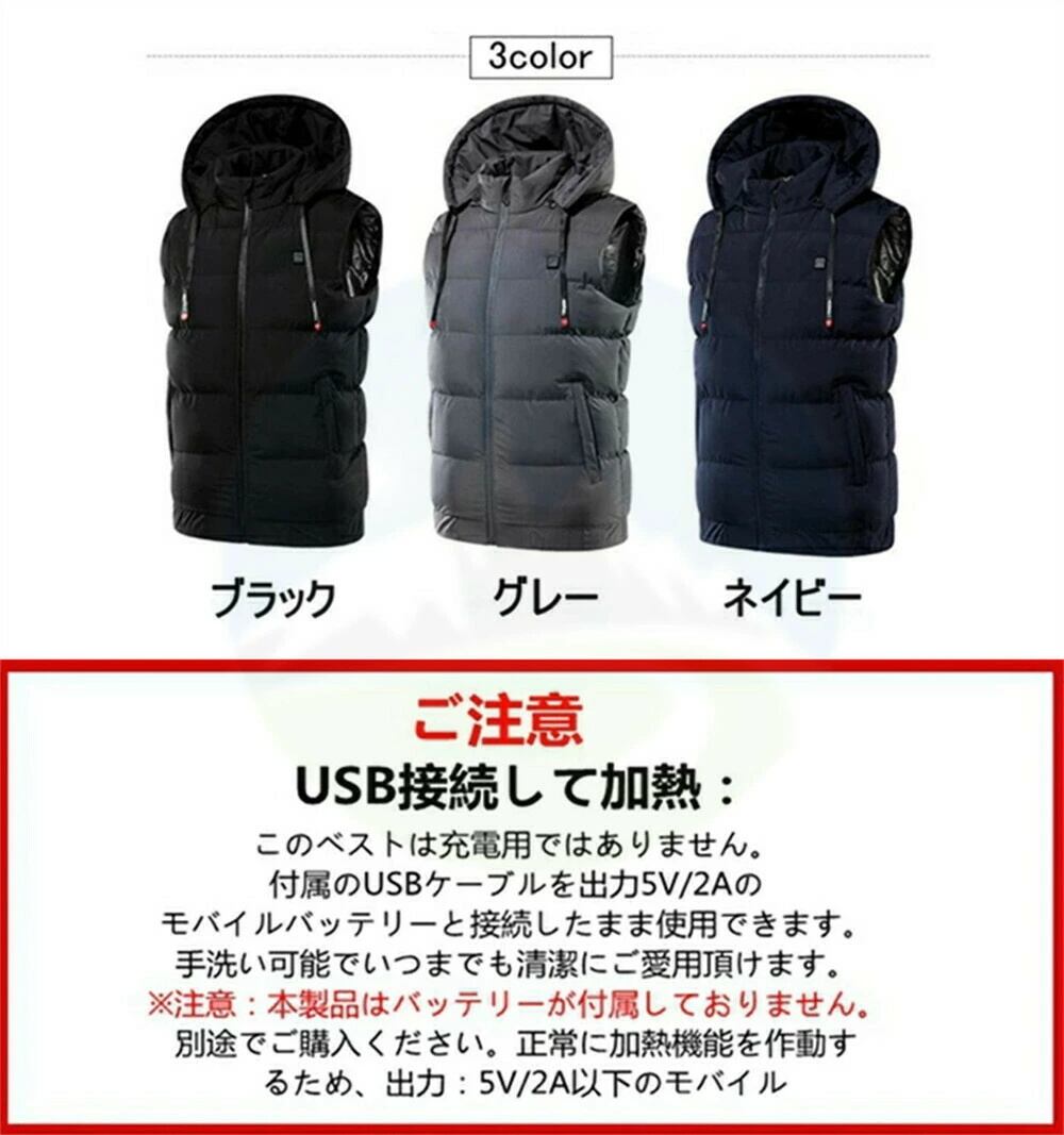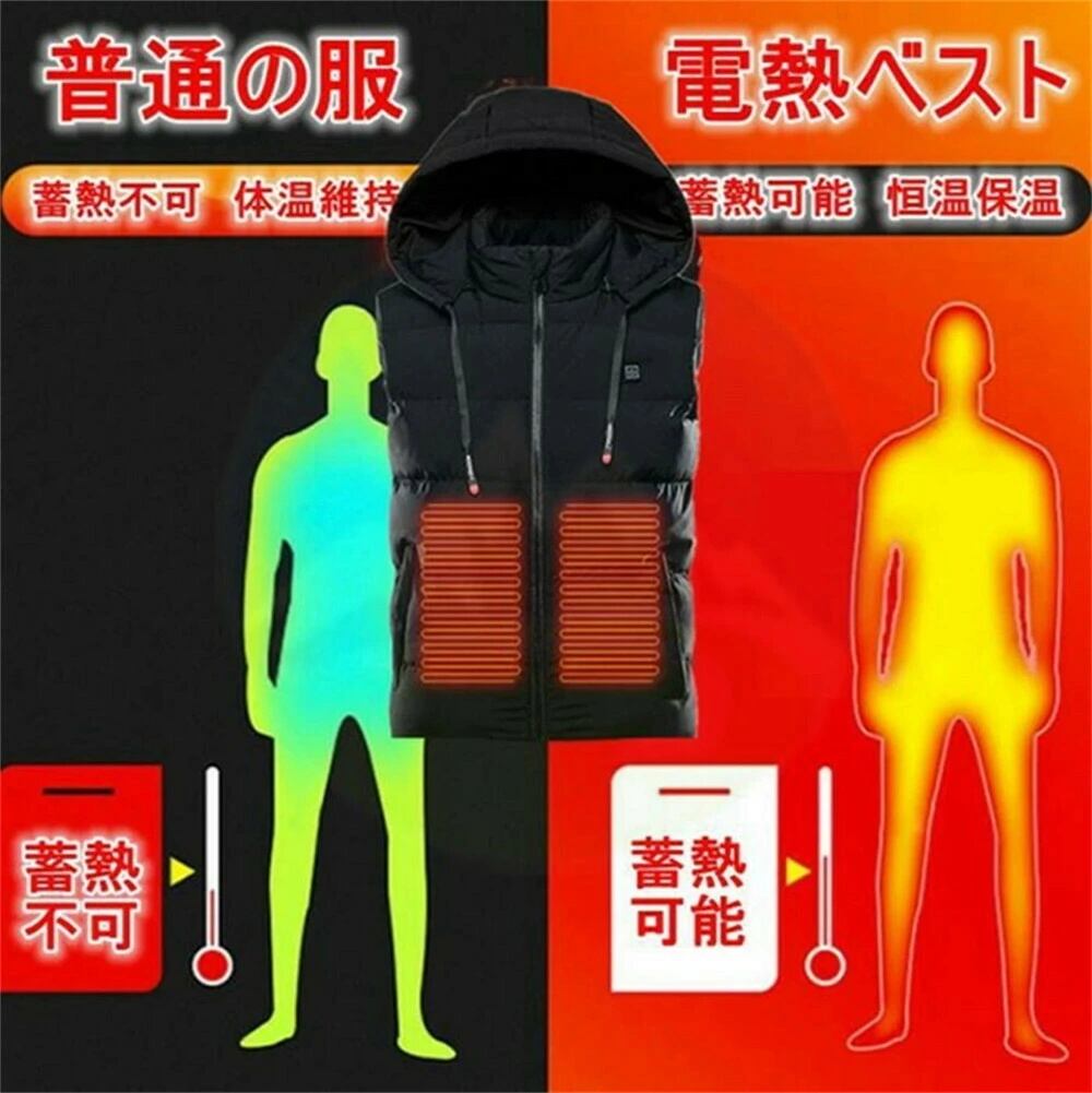 電熱ベスト バッテリー給電 メンズ 3段温度調整 加熱パネル9枚 中綿入り 防風 防寒 加熱 ウェア ヒーター チョッキ 薄く 軽い USB 防寒チョッキジャケット防寒着 作業服 暖房服 水洗い可能 ジャケット ベスト 防寒グッズ ギフト プレゼント