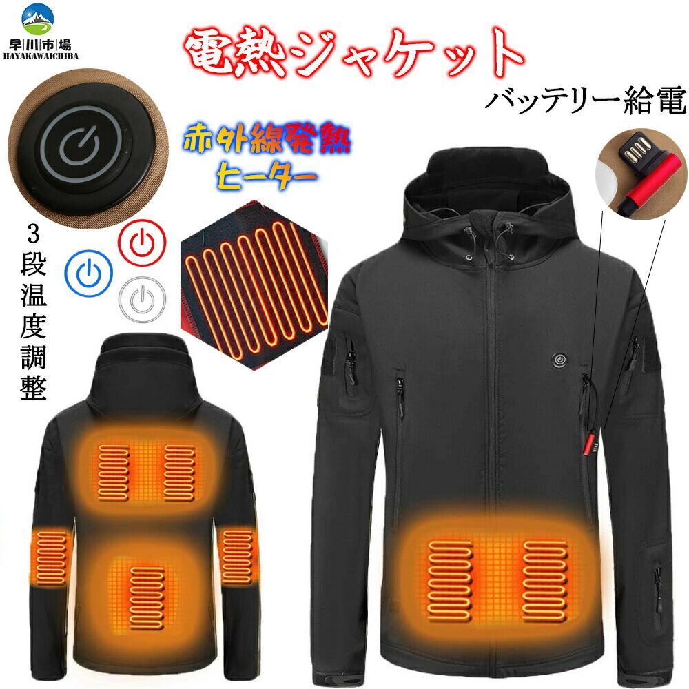 電熱ジャケット バッテリー給電 メンズ 3段温度調整 加熱パネル7枚 中綿入り 防風 防寒 加熱 ウェア ヒーター チョッキ 薄く 軽い USB 防寒チョッキジャケット防寒着 作業服 暖房服 水洗い可能 ジャケット ベスト