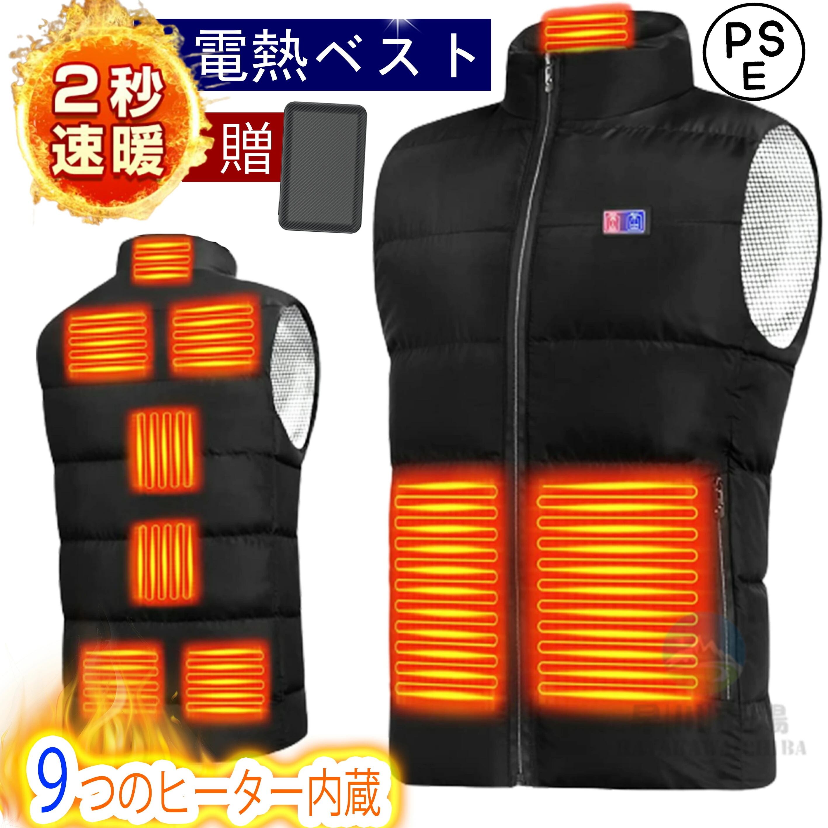 ヒーターベスト 電熱ベスト バッテリー付き 日本製ヒーター USB充電式 9つヒーター 加熱ベスト 3xl 4xl防寒ベスト 速暖 電熱ジャケット 3段階温度調節 電熱ウェア バイクウェア 敬老の日