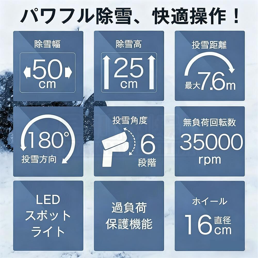 【2026最新進化版】【楽天1位】除雪機 手押し式 充電式 電動除雪機 コードレス除雪機 小型 家庭用 LEDライト付き 除雪器具 軽量 雪かき 電動スコップ 安全スイッチ 除雪器具 大容量バッテリー 除雪高25cm 除雪幅50cm 最大投雪距離7.6m 降雪 清掃 投雪 庭 駐車場女性