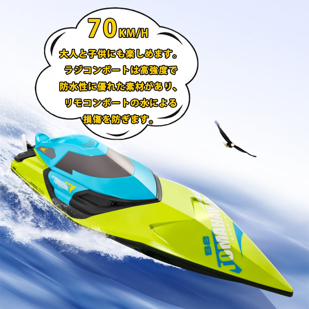 【史上最速を実現】ラジコン ラジコンボート 船 高速70km/h ブラシレスモーター RCボート 防水性 転覆回復 低電圧アラーム デモモード LEDライト 速度調整可能 2.4Ghz無線操作 おもちゃ こども向け 子供 大人 贈り物 誕生日 こどもの日 プレゼント 小学生 中学生