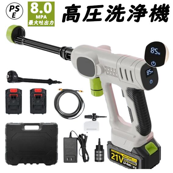 【3段階調整】高圧洗浄機 充電式 コードレス 日常吐出圧力80bar 洗車 コンパクト コードレス高圧洗浄機 大容量バッテリー 家庭用 高圧洗浄器 低騒音 各種セット付き 車 洗浄機 洗車機 庭 階段 外壁 ベランダ 収納ボックス 日本語説明書 軽量 PSE認証