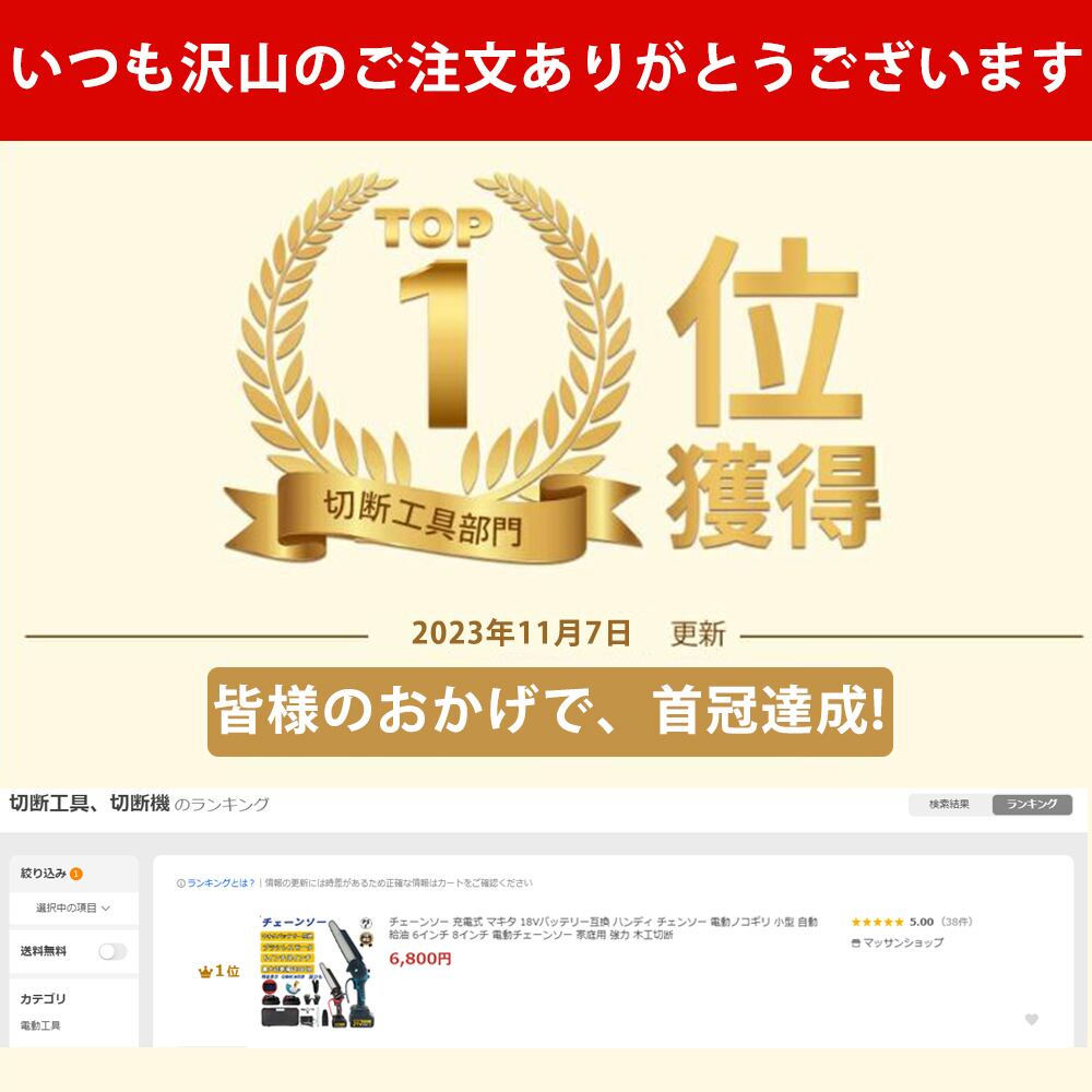 純銅モーター&耐久性UP:このチェンソーは強力的な純銅モーターと深い焼入れた高硬度で耐磨耗性に優れているチェーンを採用して、切断性能を向上させるだけでなく、耐用年数を延ばすことができます。木、竹、枝を簡単に切ることができます。