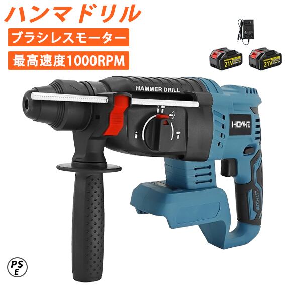 電動ハンマドリル 充電式 ハンマドリル コードレスハンマードリル ブラシレスモーター搭載 無段変速 3つモード 電動ハンマ ハンマドリル 最大穴あけ能力 電動工具 DIY 家庭用 強力吸着盤なし 工事