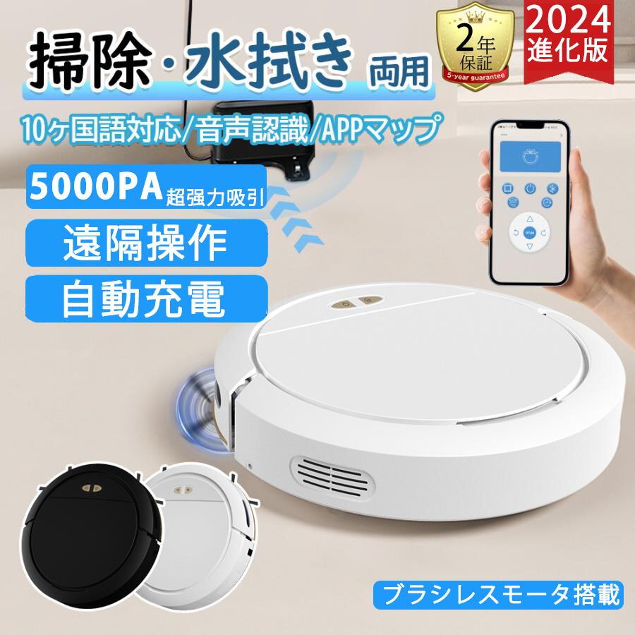 ロボット掃除機 5000Pa 強力吸引 水拭き 2in1 高性能 自動ゴミ収集 収納 比較 シンプル操作 拭き掃除 両用 自動洗浄 花粉対策 水拭き両用 落下防止 超薄型 畳 静音 あす楽 自動充電 WiFi 130分間連続稼働 乾湿拭き お掃除ロボット 床拭き 一年保証 2024