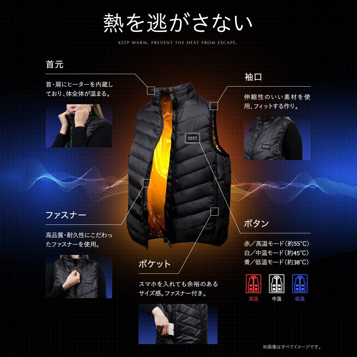 パッケージの内容:1*電熱 ベスト、1*10000mAhモバイルバッテリー、1*専用充電ケーブル、1*日本語取扱説明書