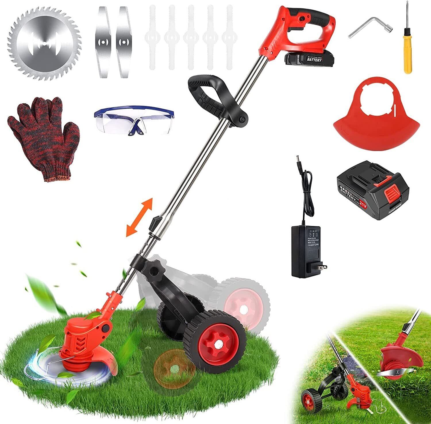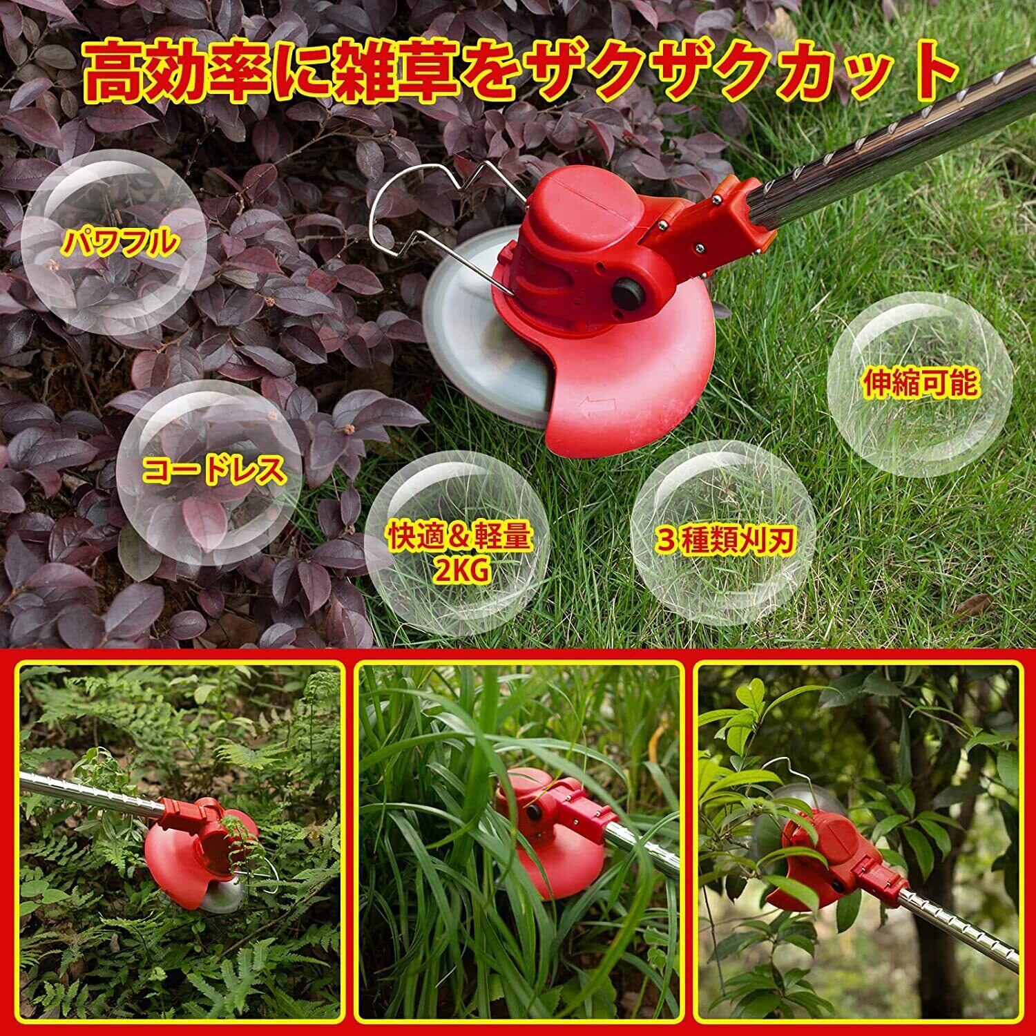 【車輪付き】草刈機 充電式 電動 草刈り機 コードレス 替え刃 8枚付き 充電式 芝刈り機 刈払機 コスパ抜群 軽量 グラストリマー グラストリマー 樹脂ブレード 金属刃 ナイロンコード 除草 安全 園芸機械 刈払機