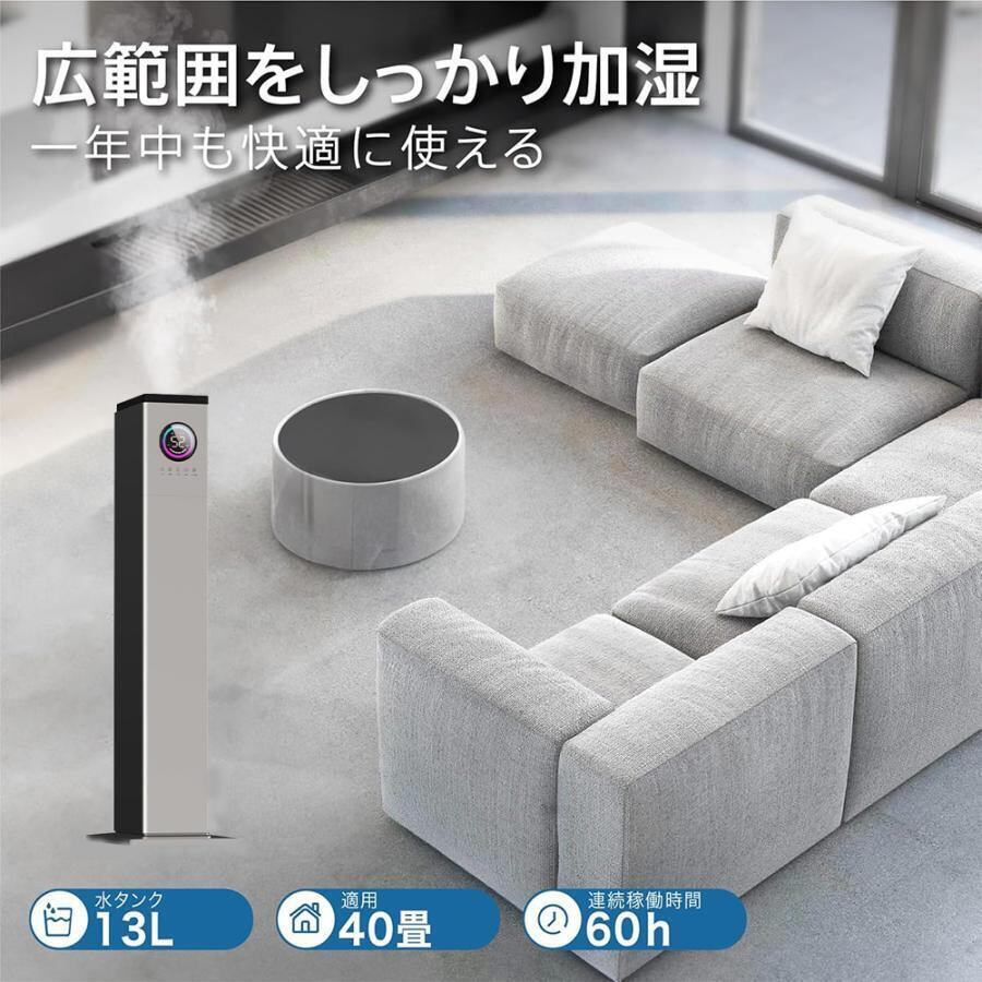 加湿器 加湿機 スチーム式 超音波式 空気清浄 40畳 大容量 13L 大型 タワー型 おしゃれ 除菌 自動湿度調節 空焚き防止 上部給水 6段階調節 最大噴霧量1000ML/H 業務用 寝室 静音 節電 省エネ 人気のアロマ オシャレランキング おすすめ