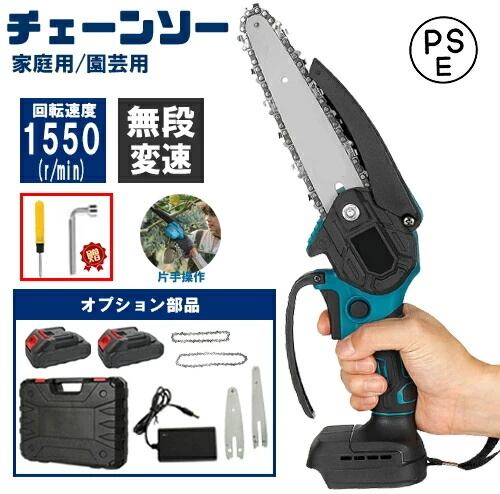 チェーンソー 充電式 電動チェーンソー 4/6インチ家庭用 コードレス ミニチェーンソー 小型電動のこぎり ミニチェンソー 片手 軽量 強力 木工切断 枝切り 園芸設備 枝切り 庭木 伐採 電動工具 PSE認証 送料無料【2年保証】