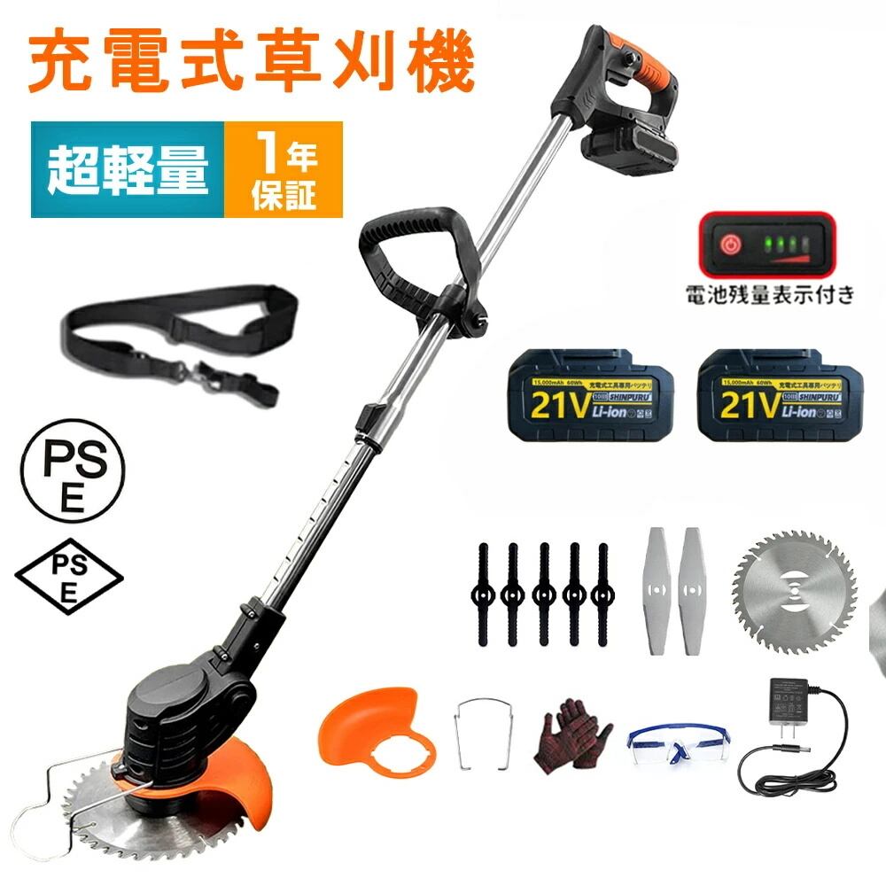 【バッテリー2個セット】 草刈り機 充電式 草刈機 コードレス 電動 草刈機 替え刃 8枚付き 軽量 刈払機 多機能 伸縮角度調整 枝切り 刈払機 除草 園芸機械 送料無料 樹脂ブレード 金属刃 日本語の説明書 電動 草刈機 【1年保証】