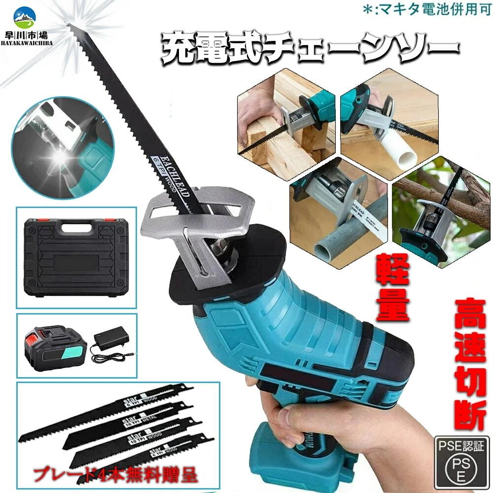レシプロソー 充電式 電動のこぎり 電動ノコギリ 小型チェンソー 充電式 無段変速 電動チェーンソー ミニチェーンソー 強力 片手 軽量 職人 木工切断 枝切り 園芸設備 庭木 金工 木工 切断 PSE認証済み【日本語取扱説明書付き】 父の日