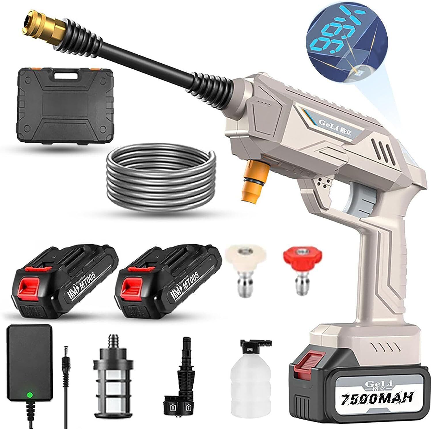 高圧洗浄機 コードレス 充電式 5MPa 高圧洗浄 家庭用 バッテリ液晶電源表示 コンパクト 小型 豪華付属品 6in1多機能マルチノズル 温水 大掃除 掃除用品 車掃除 水圧 高圧 洗浄 洗浄機 PSE認証 敬老の日 プレゼント