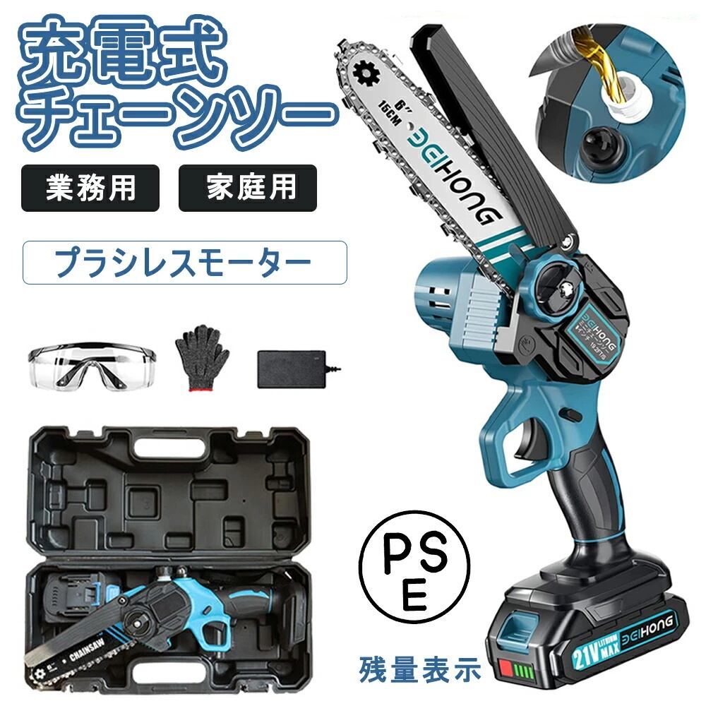 チェーンソー 充電式 電動チェーンソー ハンディ チェーンソー ブラシレスモーター 家庭用 ミニチェーンソー コードレス 小型 6寸 バッテリーチェーンソー電動のこぎ 片手 軽量 強力 木工切断 枝切り 園芸設備 枝切り 敬老の日 プレゼント