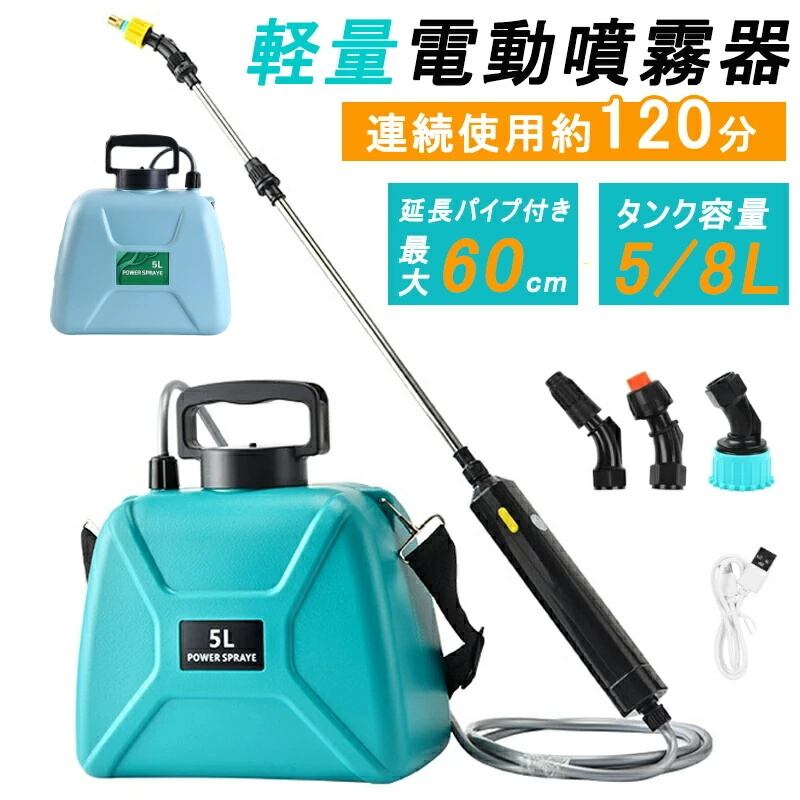 電動噴霧器 充電式噴霧器 背負い容量5L 連続自動噴霧 バッテリー内蔵 USB Type-C 充電式 噴霧器 格納式0.6m延長ポール コードレス 多方向スプリンクラー付き 消毒 防除 除草 散水器 園芸 植物 噴霧器