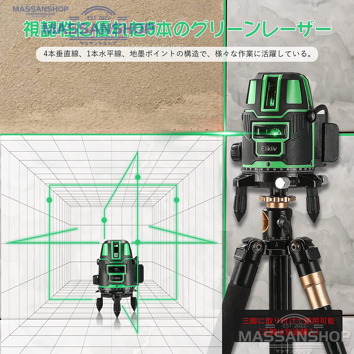 5ライン グリーンレーザー墨出し器 レーザーレベル、レーザー墨出し器、水平器、墨だし、墨出 測量 測定器 建築 プロの建築現場で人気のフルラインタイプ!安心購入