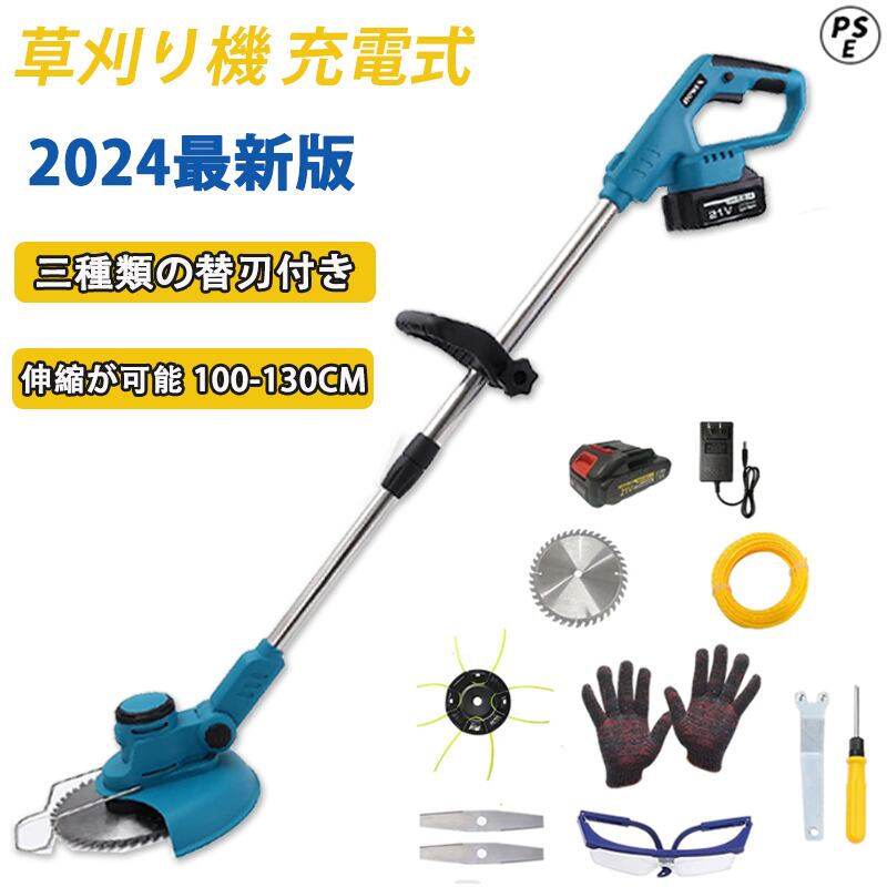 草刈り機 充電式 電動刈払機 5種類替刃 伸縮式 草刈り 芝刈り 電気草刈り機 芝刈り機 電気 庭 畑 雑草 草 植木 草刈器 草刈り器 安全 電動刈払い機 肩掛けベルト
